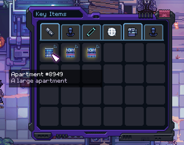 Currently, the Wefco Apartment Access Panel requires players to manually enter apartment numbers each time they wish to access their apartments or visit friends. To improve convenience, the panel could display owned apartments automatically, similar to how the Apartments tab functions in the Key Items menu.