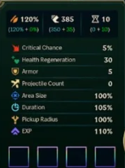 Upgrades are either passive bonuses (health, armor, health regen, damage, movement speed). OR upgrades to your weapon abilities.